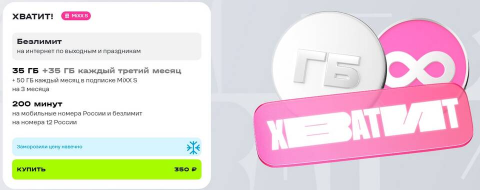 | Внутри сети | Отдельный счетчик для звонков на номера Теле2 |